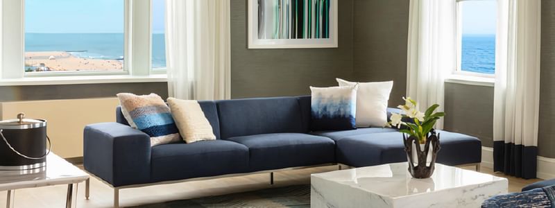 Once occupied by the iconic Johnny Cash himself during his ownership of the Berkeley Carteret Hotel, this one-bedroom Penthouse Suite offers stunning corner ocean views, a full kitchen, spacious entertainment area, and one bedroom with 1 King Bed.